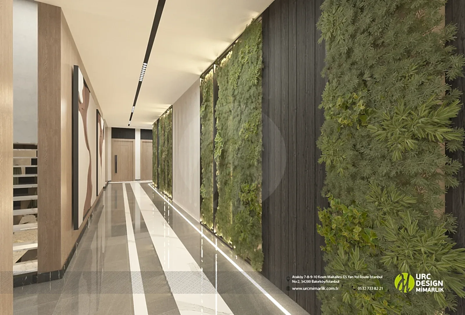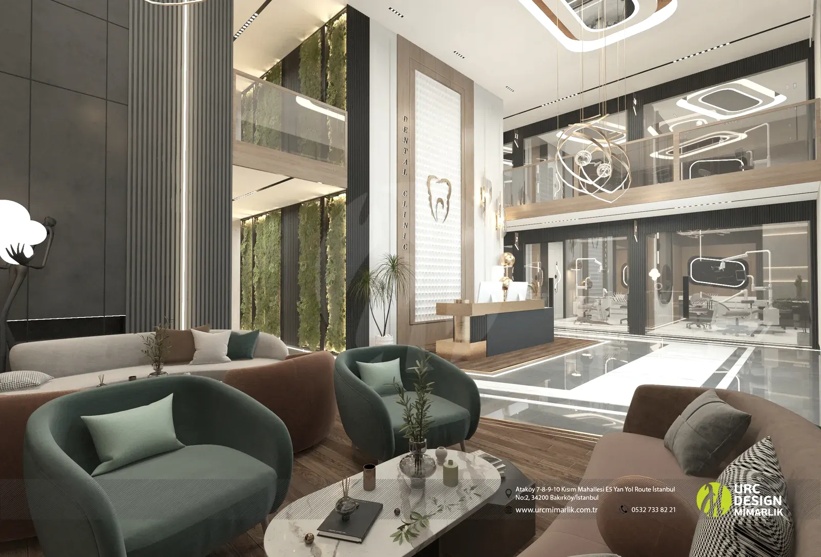 Mekanın ferahlığını artırmak için doğal malzemeler tercih edilmiş ve yeşil bitki dokunuşlarıyla iç mekan doğayla bütünleştirilmiştir. Bu tasarım öğeleri, sadece estetik değil, aynı zamanda klinik ortamında rahatlık ve huzur duygusunu artırarak tedavi sürecine olumlu bir etki yapar. "İstanbul'da Klinik" projesinin ferah atmosferi, hastaların huzur içinde vakit geçirmesini sağlayarak, tedavi sürecinin daha olumlu ve destekleyici bir deneyim olmasına olanak tanır.