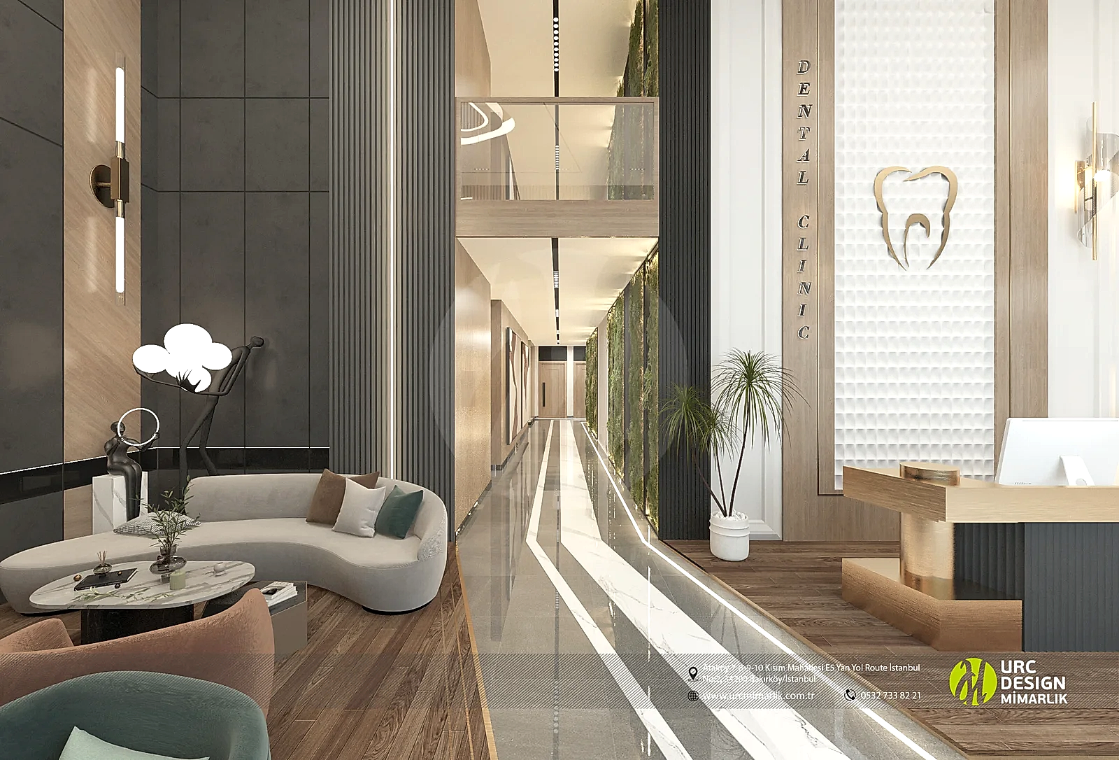 Klinikteki duvar tasarımı, sakin renk paletleri ve modern desenlerle estetik bir denge oluşturarak, rahatlatıcı bir atmosfer yaratmayı amaçlamaktadır.