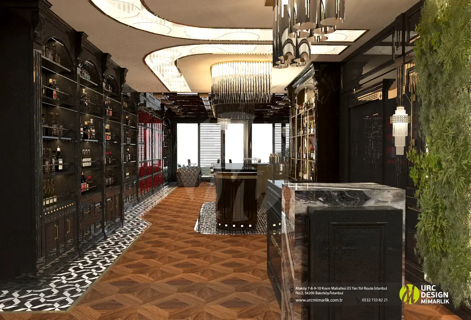 Whiskey Lounge, konuklarına eşsiz bir lüks deneyimi sunmak üzere tasarlanmıştır. İç mekanın her detayında lüks malzemeler kullanılarak, mekanın atmosferine sofistike bir dokunuş eklenmiştir. Özel olarak seçilmiş mobilyalar ve aydınlatma detayları, mekanın zarafetini ve estetiğini vurgularken, sıcak ahşap tonları ve metal aksesuarlar, modern lüksün izlerini taşır. Ayrıca, lüks içki koleksiyonları ve özel tadım etkinlikleri, konuklara unutulmaz bir lezzet deneyimi sunar.